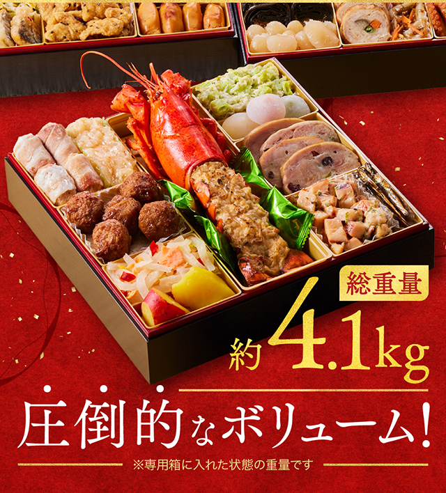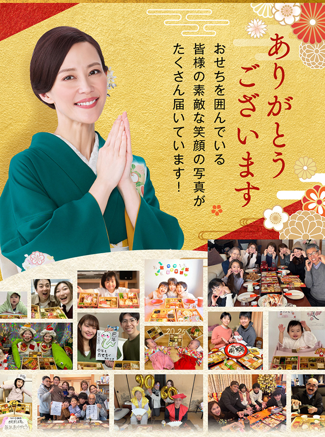 少人数から大人数まで、大人も子どもも皆様で味わい楽しめる、家族や口コミで人気のおせちを一段重〜七段重まで60種類以上取り揃えました。ご予約受付中。