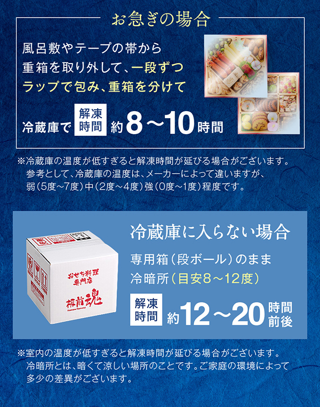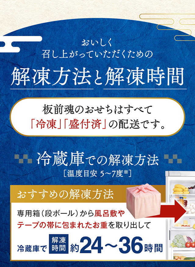 当店の おせち料理 は 冷凍おせち料理 となります。