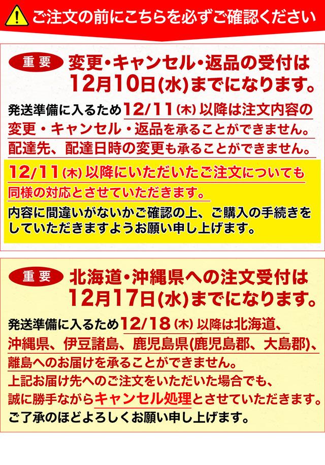 ご注文のご変更・キャンセルの受付を12月10日(水)までとさせていただいております。