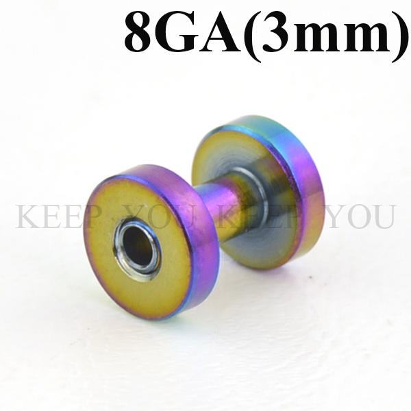 【メール便対応】フレッシュトンネル レインボー 8G(3mm) サージカルステンレス316L カラーコーティング加工 虹色 アイレット ネジ式 ボディーピアス ロブ イヤーレット 8ゲージ┃