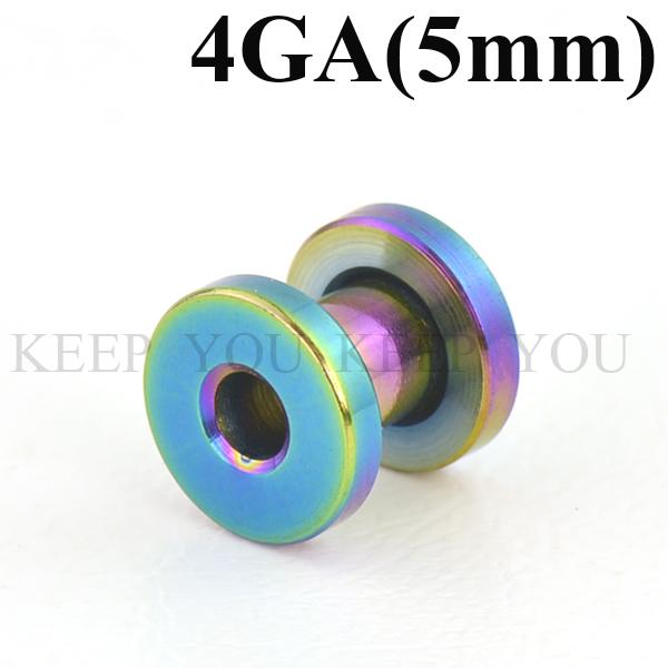 【メール便対応】フレッシュトンネル レインボー 4G(5mm) サージカルステンレス316L カラーコーティング加工 虹色 アイレット ネジ式 ボディーピアス ロブ イヤーレット 4ゲージ┃
