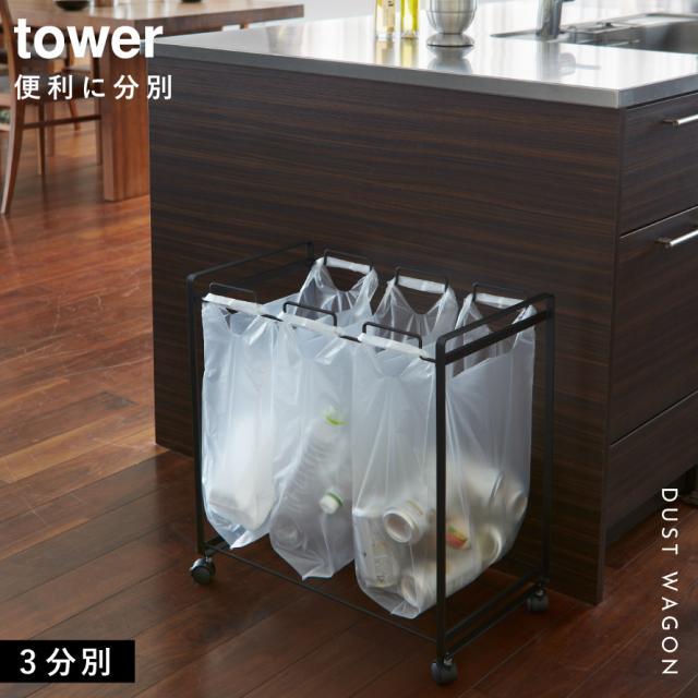 ゴミ箱 分別 キッチン タワー tower 山崎実業 レジ袋 ごみ箱 おしゃれ ダストボックス 分別ダストワゴン タワー キッチン 3分別