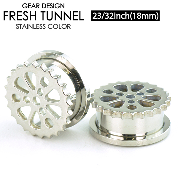 メール便 送料無料 フレッシュトンネル ギア3 23/32inch(18ミリ) サージカルステンレス316L【ボディピアス ボディーピアス】アイレット イヤーレット 稀少 デザイン 18mm ┃