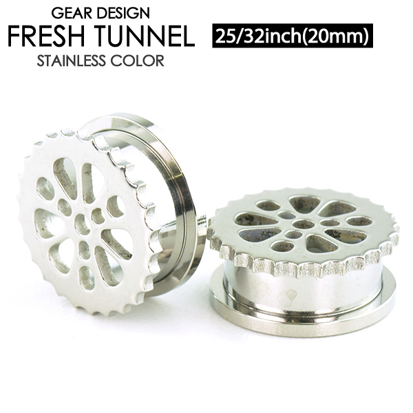 メール便 送料無料 フレッシュトンネル ギア3 25/32inch(20ミリ) サージカルステンレス316L 【ボディピアス ボディーピアス】アイレット イヤーレット 稀少 デザイン 20mm ┃