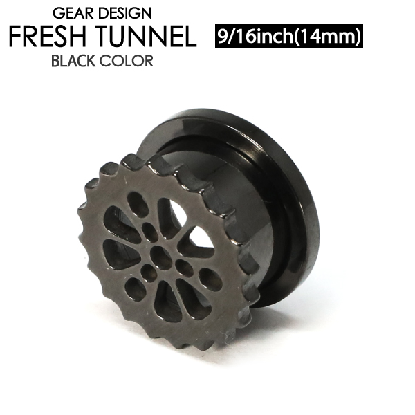 メール便 送料無料 フレッシュトンネル ギア3-BLACK 9/16inch(14ミリ) ブラック加工 サージカルステンレス316L【ボディピアス ボディーピアス】イヤーレット アイレット イヤーロブ ┃
