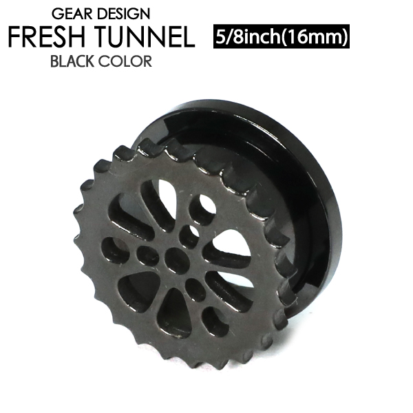 メール便 送料無料 フレッシュトンネル ギア3-BLACK 5/8inch(16ミリ) ブラック加工 サージカルステンレス316L【ボディピアス ボディーピアス】イヤーレット アイレット イヤーロブ ┃