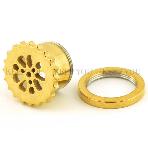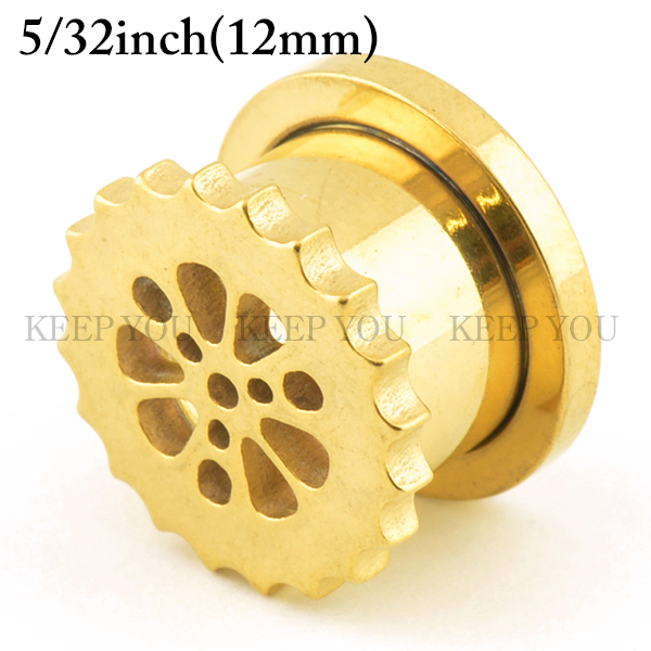 メール便 送料無料 フレッシュトンネル ギア3-GOLD 5/32inch(12ミリ) カラーコーティング加工 サージカルステンレス316L イヤーロブ ホールトゥに最適 ボディーピアス ┃