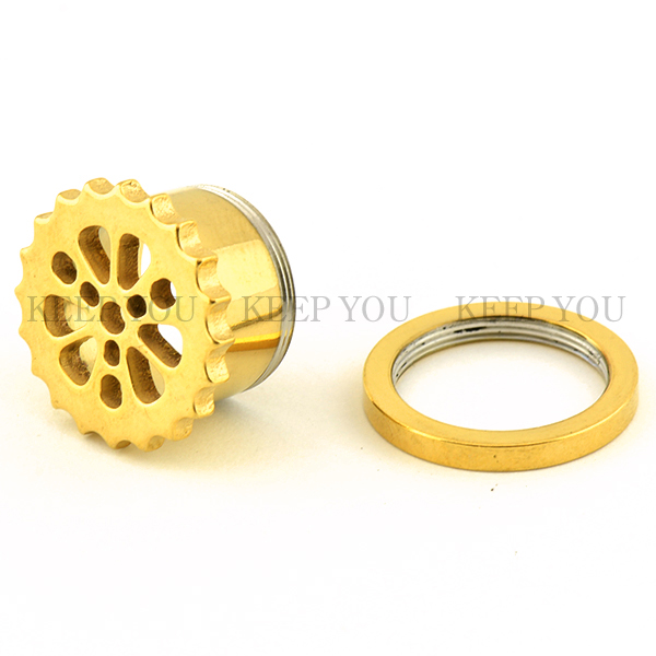 メール便 送料無料 フレッシュトンネル ギア3-GOLD 9/16inch(14ミリ) カラーコーティング加工 サージカルステンレス316L イヤーロブ ホールトゥに最適 ボディーピアス 14mm ┃