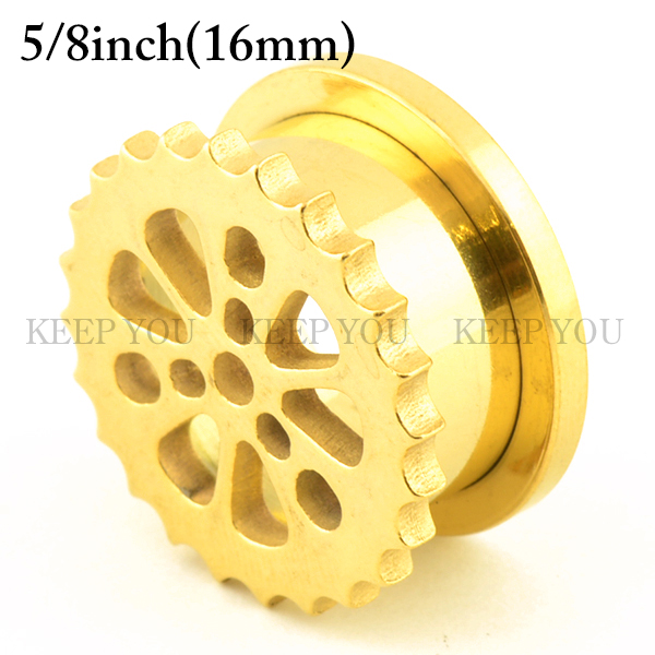 メール便 送料無料 フレッシュトンネル ギア3-GOLD 5/8inch(16ミリ) カラーコーティング加工 サージカルステンレス316L イヤーロブ ホールトゥに最適 ボディーピアス 16mm┃