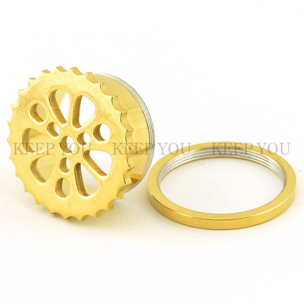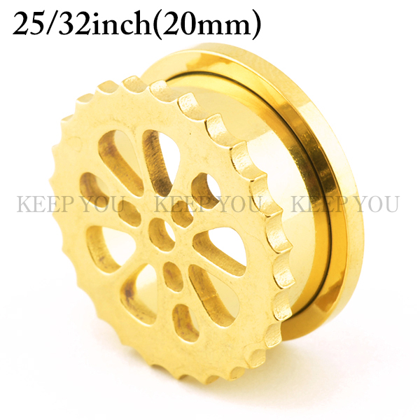 メール便 送料無料 フレッシュトンネル ギア3-GOLD 25/32inch(20ミリ) カラーコーティング加工 サージカルステンレス316L イヤーロブ ホールトゥに最適 ボディーピアス 20mm ┃