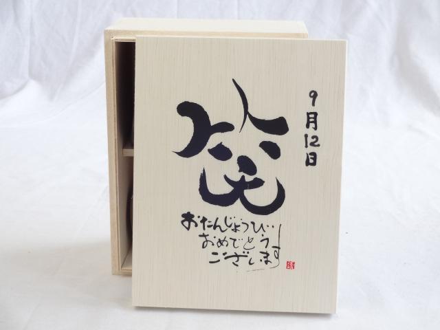 誕生日9月12日セット おたんじょうびおめでとうございます 笑う門には福来たる木箱ペアカップセット(日本製萬古焼き) 陶芸作家 安藤嘉規作×デザイン書道家 榮田 清峰作