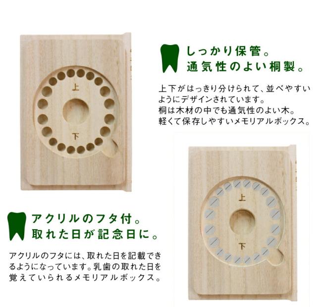 - だからギフトにおすすめ。3つのポイント - 1. 飾っておきたくなるデザイン ※2016年度グッドデザイン賞受賞商品。 大切な我が子の成長のものがたりを一冊の本に… 本棚に飾れる可愛いブック型ケースです。 いつでも目の届く本棚にもスッキリ収納できるのはもちろん、 コンパクトだからインテリアとして飾っても。 ふとした時に開いて、我が子との思い出に浸る。 子供の成長を感じる、誰もがジーンとする瞬間。 大切な思い出をすぐ手に取れる場所におけば、 きっと、家族みんなが笑顔に。 ずっと大切にしまっておくものだから、 素材にはこだわりたい。 「桐」は保管に優れた通気性の良い素材。 軽くて気密性が高く防腐・防虫効果があるとも知られています。 当店の職人が一つずつ手作業で磨く桐箱。 天然の桐だから、長い年月を経て表情が変わっていきます。 お子様が大きく成長していく過程を見る様に、経年変化をお楽しみいただけます。 付属の脱脂綿をちぎって穴に詰め、抜けた歯を入れるだけ。 フタには抜けた日付を入れられるから、いつでも確認可能。 マグネット内蔵のフタだから、歯がこぼれ落ちる心配がありません。 小さい歯の場合も脱脂綿で調整していただく事が可能です。 当店は名入れギフト専門店です。 専門店ならではの技術で、ギフトにお名前を彫刻します。 「名前」は誰もが我が子の幸せを願い考え抜くもの。 だからこそ名前が入ったギフトは特別です。 記念すべき、生まれて初めての名前入りギフトに。 お友達への出産祝いとしてお選びのリピーター様多数。 ご自宅用としてご購入のお客様からは、 お子様もお喜び頂いているとのお声をいただいています! 「2人目の子供が生まれた友達への出産祝いで、2人目にへその緒入れ、1人目にはこの乳歯入れにしました。まだ渡してないのですが、喜んでくれたらいいな〜と。気に入ってくれたら、自分で買い増やしていける良い商品ですね。」 「初めて歯が抜けた娘へプレゼントしました。包みを開けるなり大喜び!毎日開けて眺めています。商品もとても素敵で 名前を入れていただけたのもとても嬉しかったです。親子共々 大満足です。」 「子供にいろいろ見せて選んでもらったところ、この商品がいいとなりました。文庫本型になっているので収納しやすく、また大人な感じがするととても喜んでいました。」 いつかはお子様が大人になっても大切にしていくものだから、ずっと飾って置けるようなものがいい。 そんな未来が楽しく想像できる、おしゃれなデザインです。 絵本を読み聞かせるように、いつかこの本を開いて話がしたい。 生え変わりの時期に「こわい!」と大泣きしたこと。 痛いからご飯を食べたくない、と大騒ぎしたこと。 抜けた乳歯を輝く瞳でこのケースに入れた日のこと。 “ 大事に育ててくれたんだ ”親が大切に想う気持ちが子どもに伝わるギフトです。 生まれたこどもの数だけある いのちの「はなし」。 本棚に本を並べるようにしまえる、 かけがえのない想い出を「文庫」のカタチの桐箱に。 芸能人ブログでも紹介され大人気。 桐で作った思い出文庫シリーズ おしばなし文庫。 大切な方のご出産のお祝いに名入れプレート付きのメモリアルボックスセットも喜ばれています。 全7種→おしばなし文庫シリーズ |