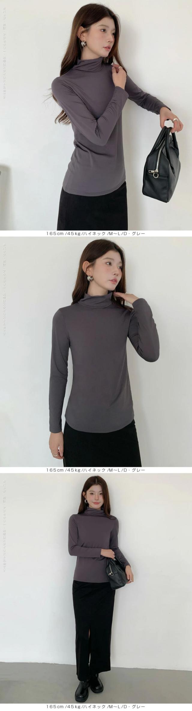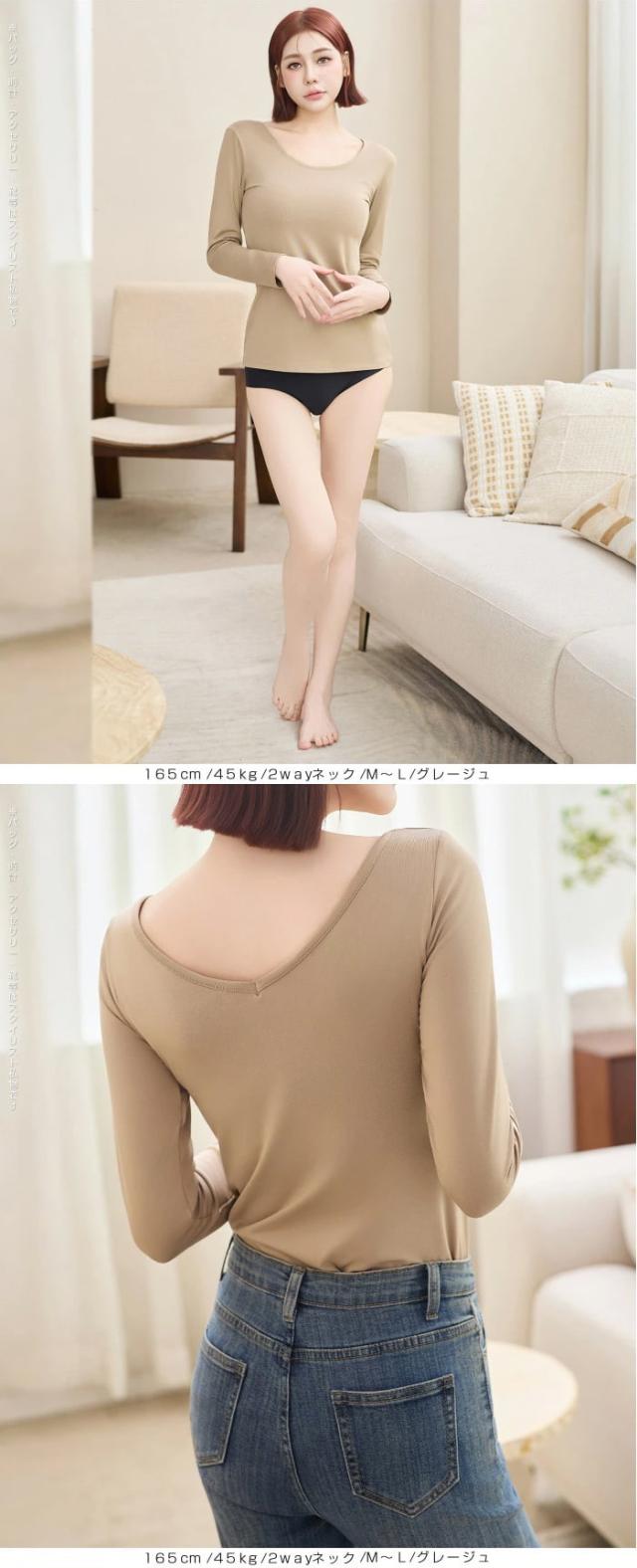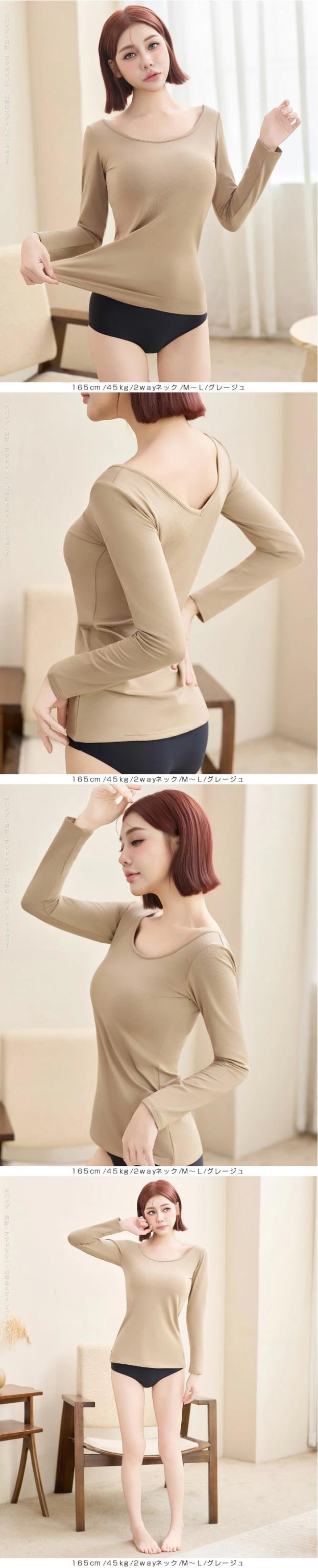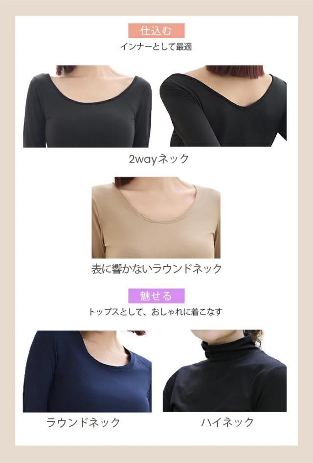 元祖裏起毛カットソー トップス インナー 裏起毛 長袖 ラウンドネック 2wayネック Vネック ハイネック ハイネック 無地 暖かい 防寒 ヒートインナー インナー ロンt 下着 カットソー レディース 黒 グレージュ 【元祖裏起毛?カットソー】
