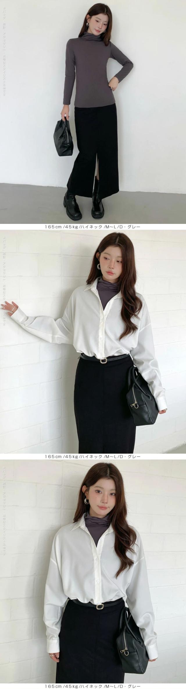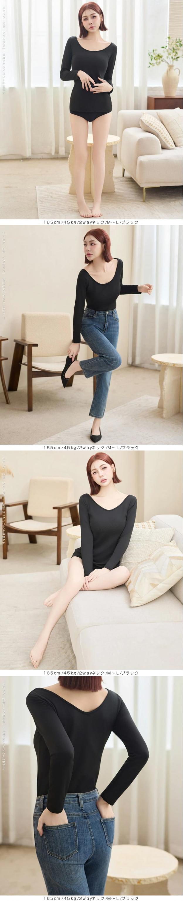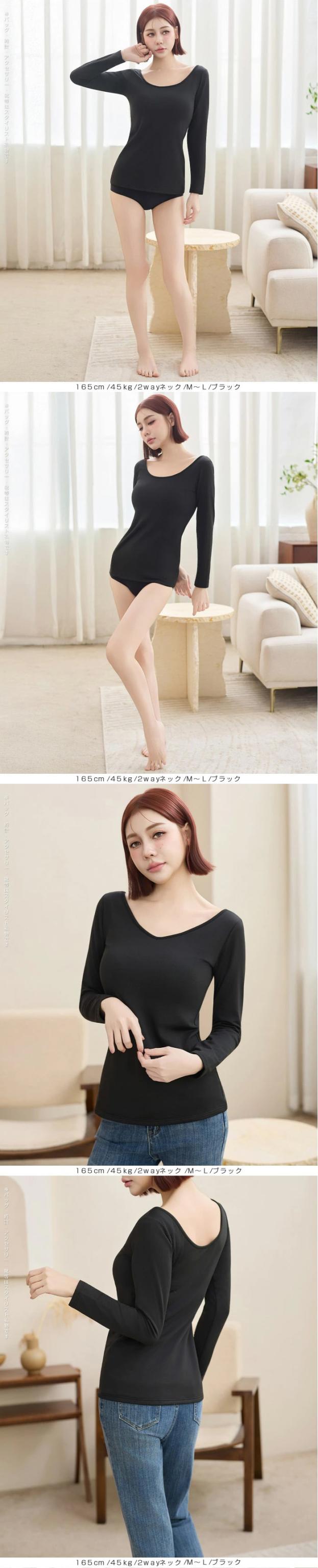 元祖裏起毛カットソー トップス インナー 裏起毛 長袖 ラウンドネック 2wayネック Vネック ハイネック ハイネック 無地 暖かい 防寒 ヒートインナー インナー ロンt 下着 カットソー レディース 黒 グレージュ 【元祖裏起毛?カットソー】