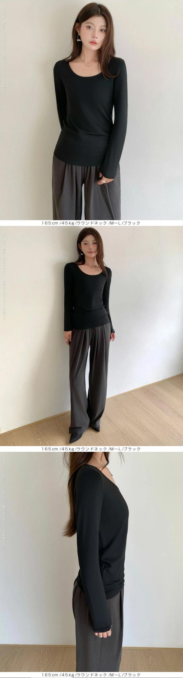 〈500円〜!クーポン利用で〉元祖裏起毛カットソー トップス インナー 裏起毛 長袖 ラウンドネック 2wayネック Vネック ハイネック 無地 暖かい 防寒 ヒートインナー インナー ロンt 下着 カットソー レディース 黒 グレージュ 【元祖裏起毛カットソー】 秋新作