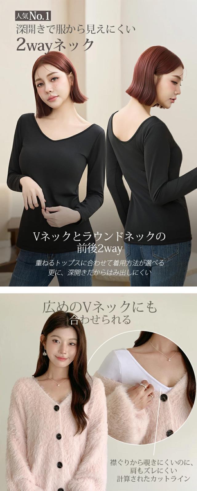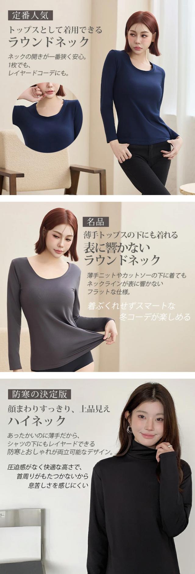 - これ1枚着るだけで暖かさが違います。何度もリピーターしたくなりますね。種類や色もオシャレで嬉しいです。