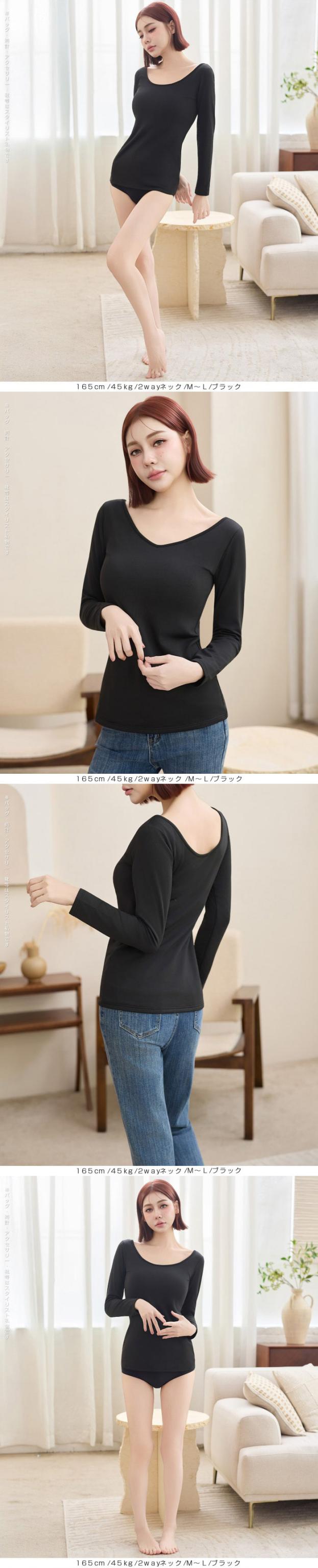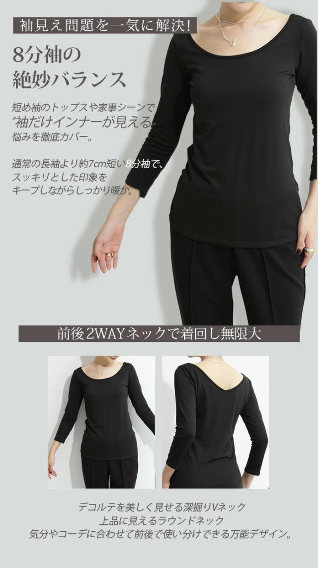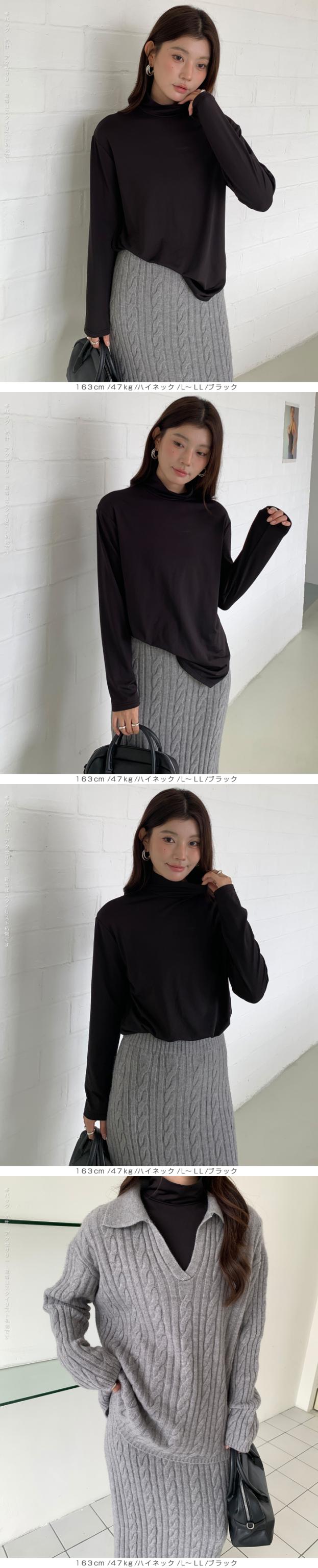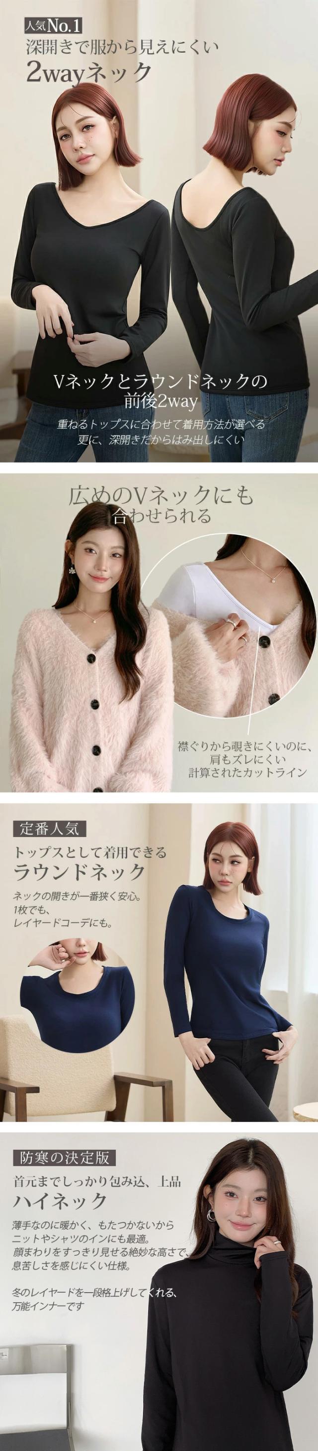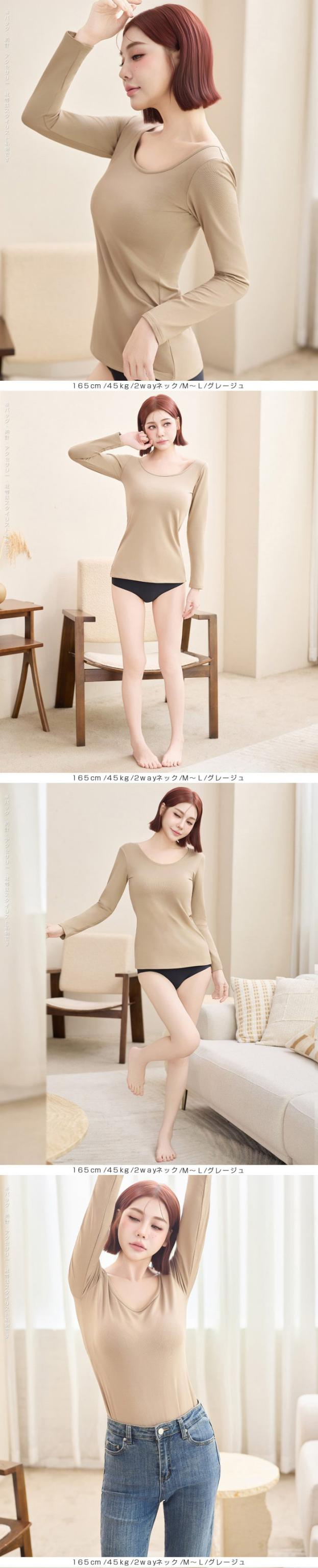 元祖裏起毛カットソー トップス インナー 裏起毛 長袖 ラウンドネック 2wayネック Vネック ハイネック ハイネック 無地 暖かい 防寒 ヒートインナー インナー ロンt 下着 カットソー レディース 黒 グレージュ 【元祖裏起毛?カットソー】