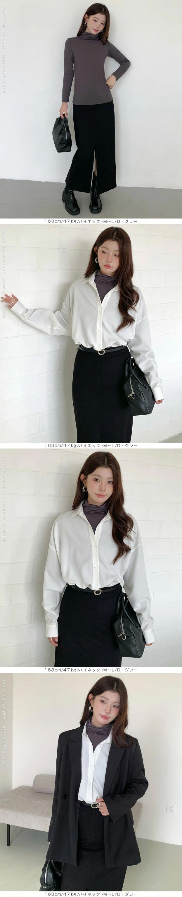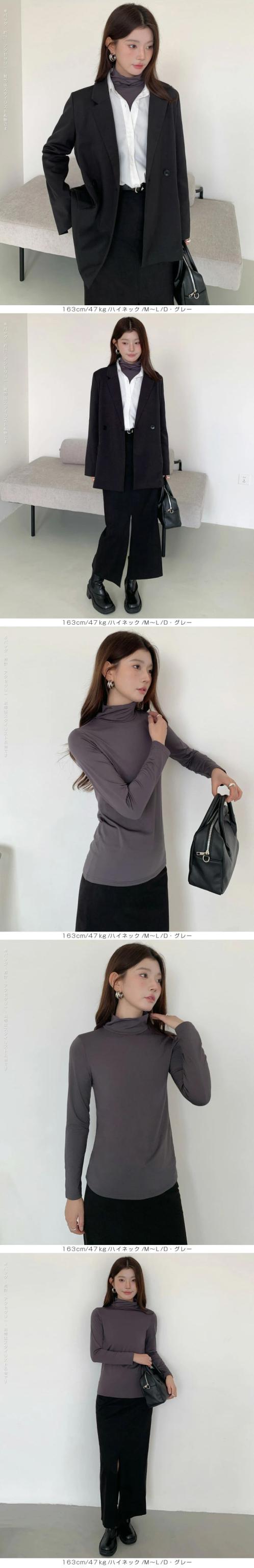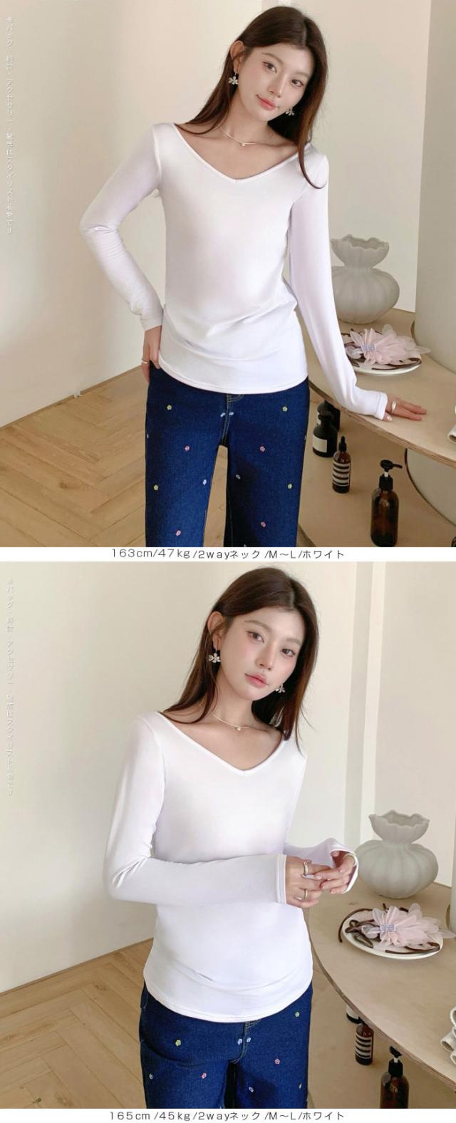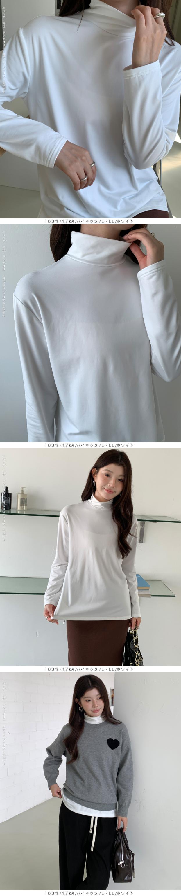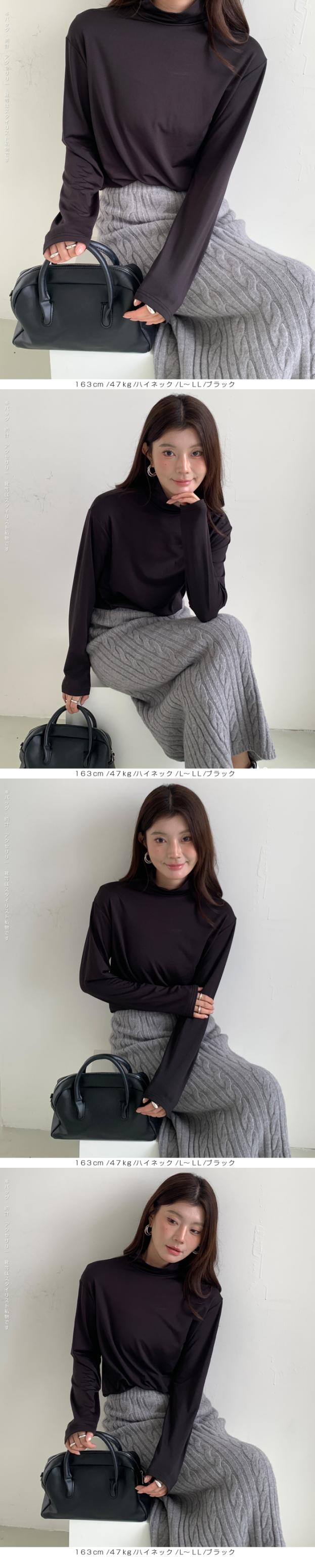 元祖裏起毛カットソー トップス インナー 裏起毛 長袖 ラウンドネック 2wayネック Vネック ハイネック ハイネック 無地 暖かい 防寒 ヒートインナー インナー ロンt 下着 カットソー レディース 黒 グレージュ 【元祖裏起毛?カットソー】