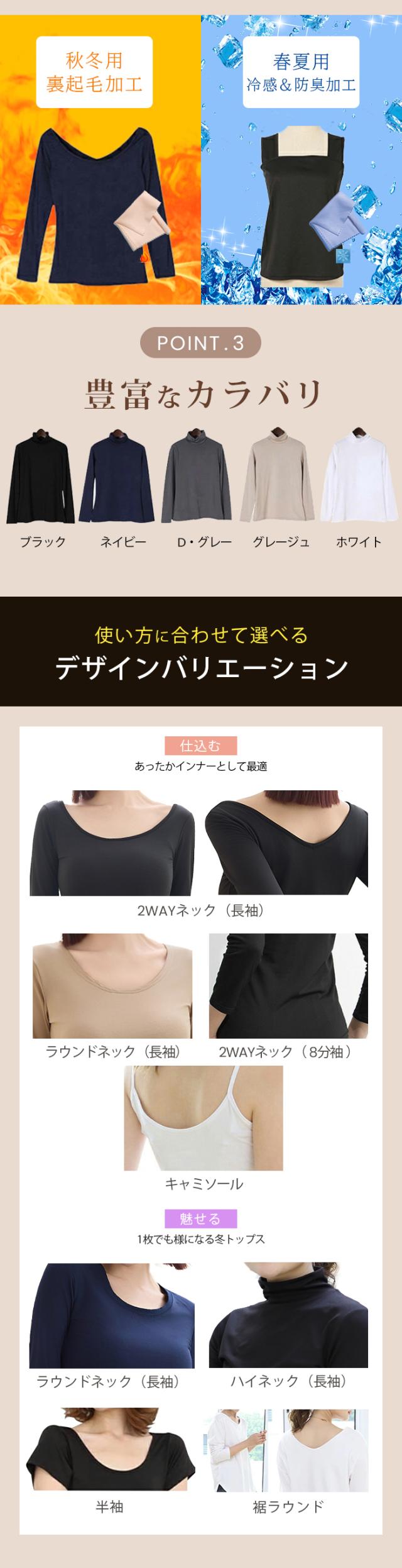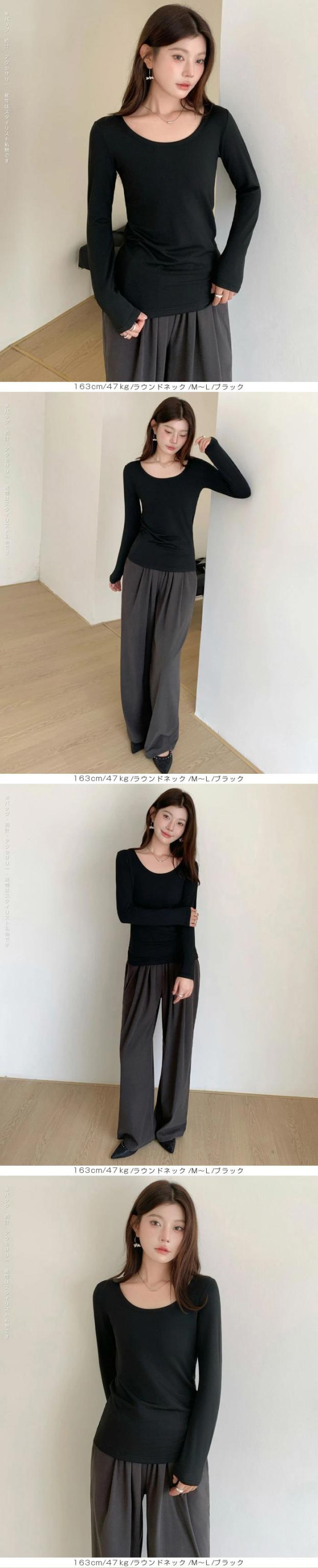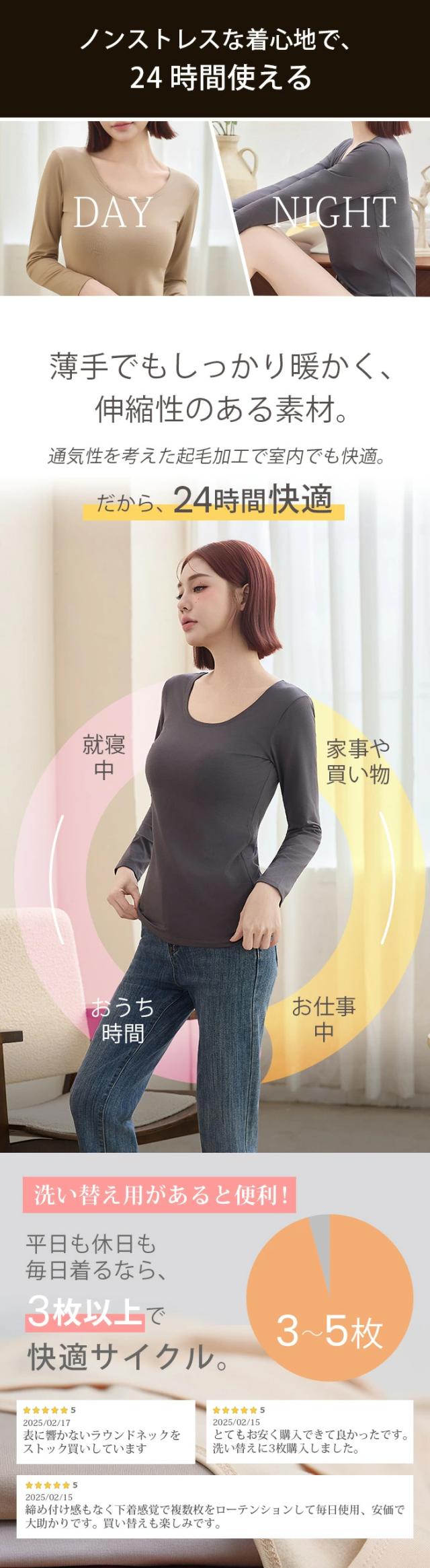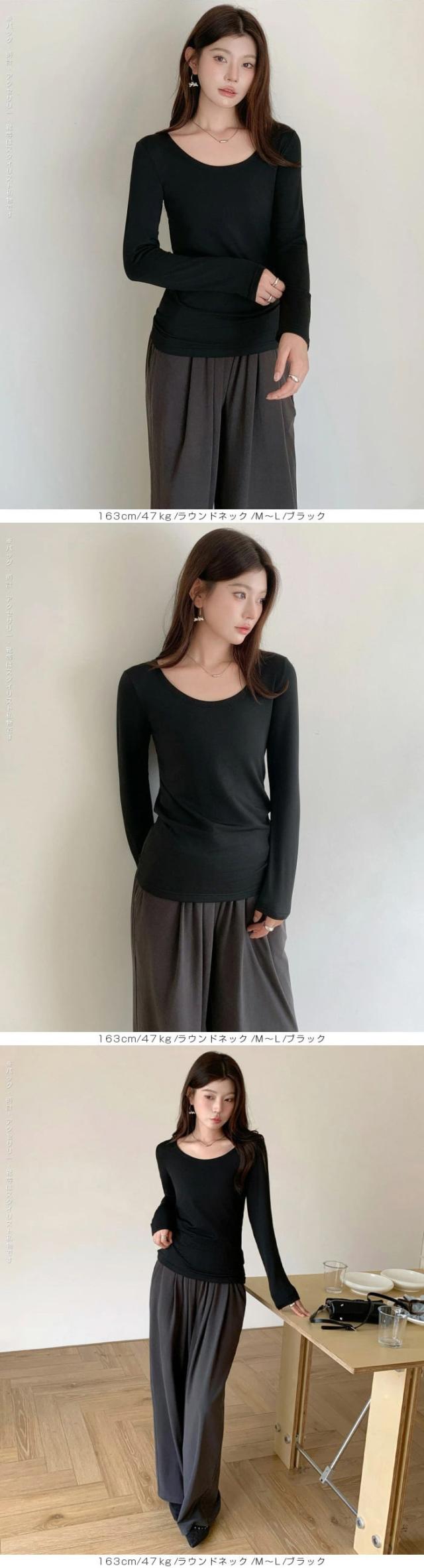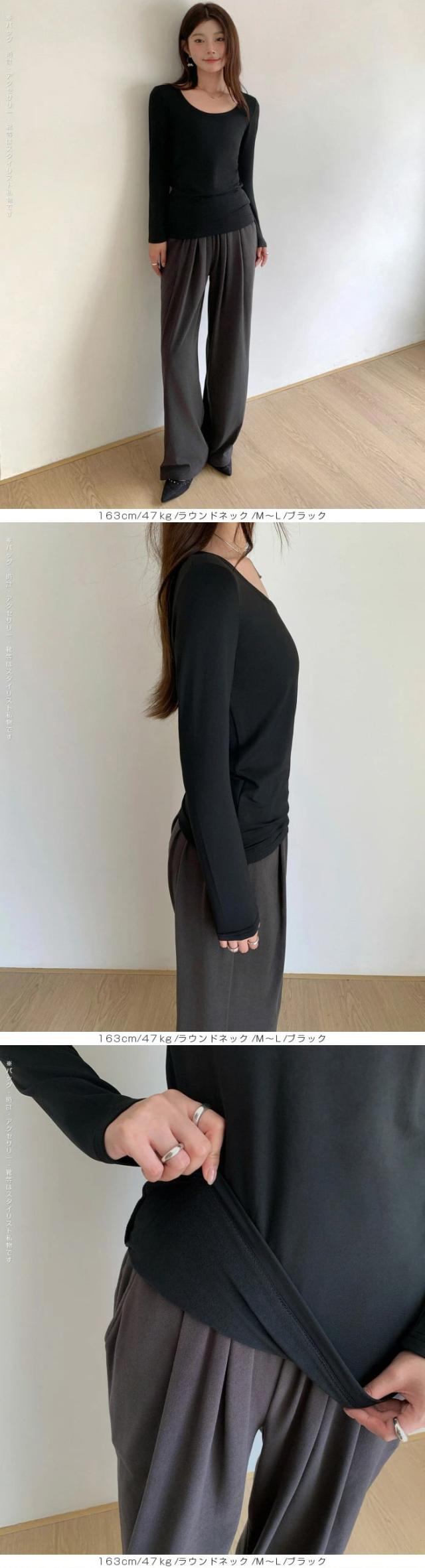 〈500円〜!クーポン利用で〉元祖裏起毛カットソー トップス インナー 裏起毛 長袖 ラウンドネック 2wayネック Vネック ハイネック 無地 暖かい 防寒 ヒートインナー インナー ロンt 下着 カットソー レディース 黒 グレージュ 【元祖裏起毛カットソー】 秋新作