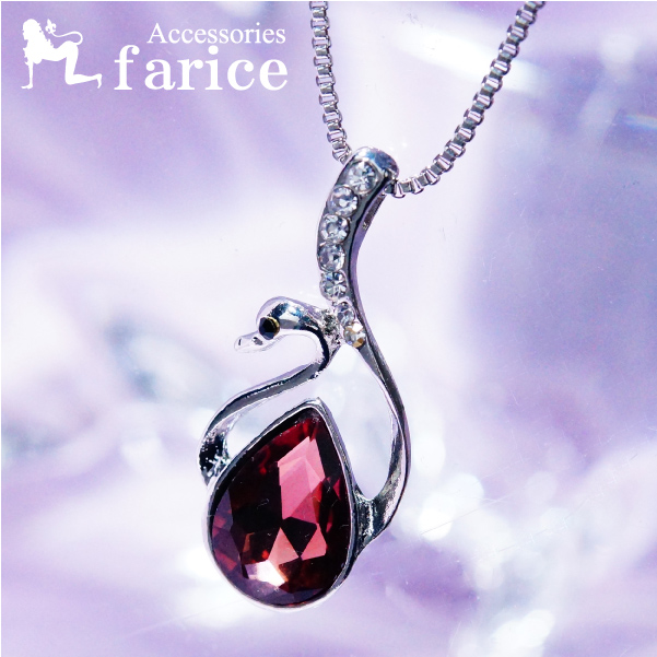 ブラックアイ&ラインストーンウィングスワン(白鳥) パープルレッドティアドロップ(涙型)ストーン レディースペンダントネックレス