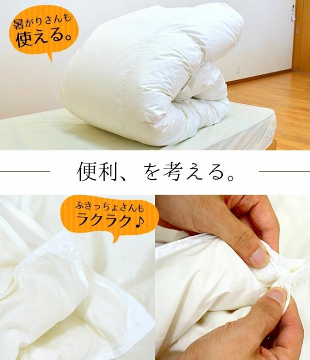 もっと楽に1枚にしたい、2枚組にしたい!そんな声にお応えして、アメリカンホックをつけました。しっかりパチッとするだけ。不器用な方でもとっても簡単に付け外しできるようになりました。8ヶ所ホック付きで、「面倒になりすぎず、2枚組時の強度も保つ」丁度いい間隔です♪ ※クイーン・キングサイズはバランスを考えて、ホックを10箇所につけました。 |