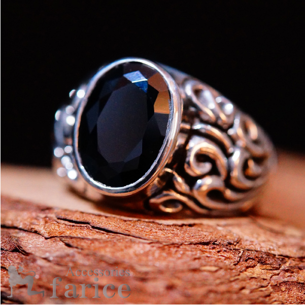大粒 ブラックジルコニア アラベスク 立体装飾 シルバー925 リング