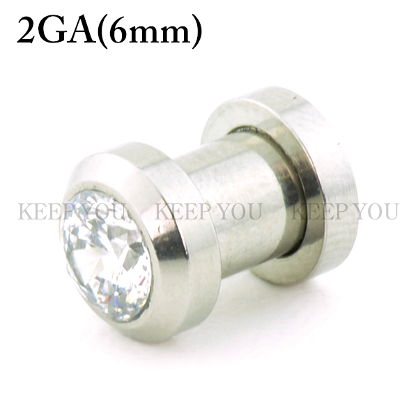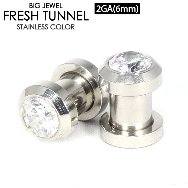 メール便 送料無料 フレッシュトンネル BIGジュエル-2 2GA(6mm) サージカルステンレス316L クリアジュエル【ボディピアス ジュエル付 ロブ アイレット イヤーレット】 ┃