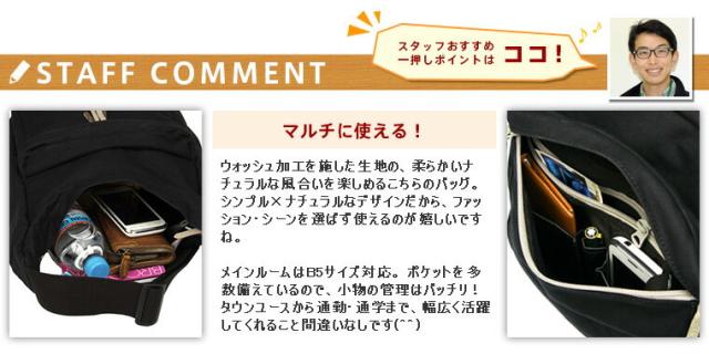 | ウォッシュ加工を施した生地が柔らかく、ナチュラルな雰囲気のショルダーバッグ! ファッション・シーンを選ばず使えるデザインに仕上がっています。 メインルームはB5サイズ対応で、ポケットもバッチリ装備! 外側のポケットにはペン挿しやキーケース等、小物整理に役立つ箇所を多数備えています。 タウンユースから通勤・通学まで、幅広くお使い頂けます! |