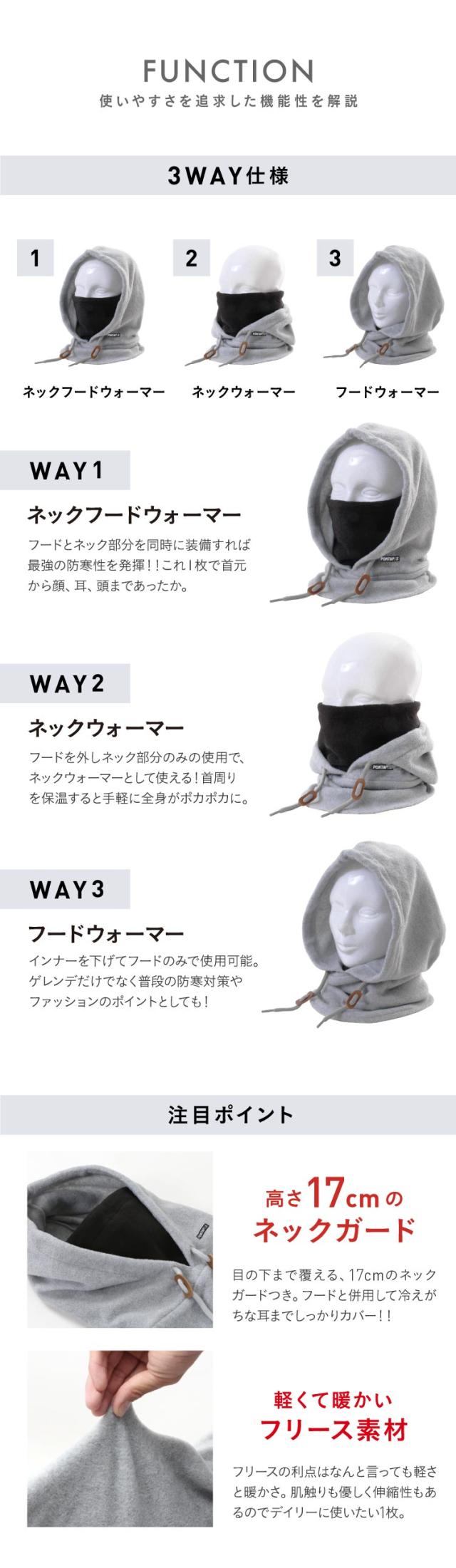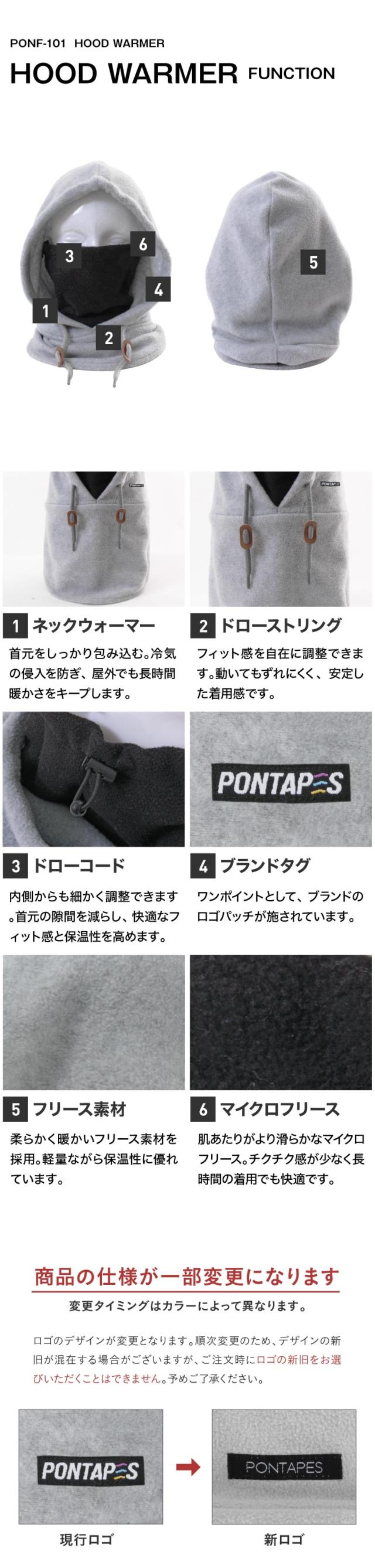 フードウォーマー スノーボード メンズ レディース スキー フリース フェイスマスク フェイスカバー 3WAY 防寒 通勤 通学 冬用 PONTAPES/ポンタぺス PONF-101