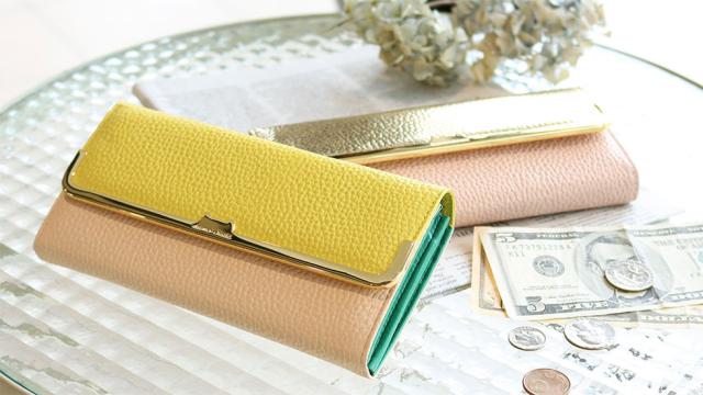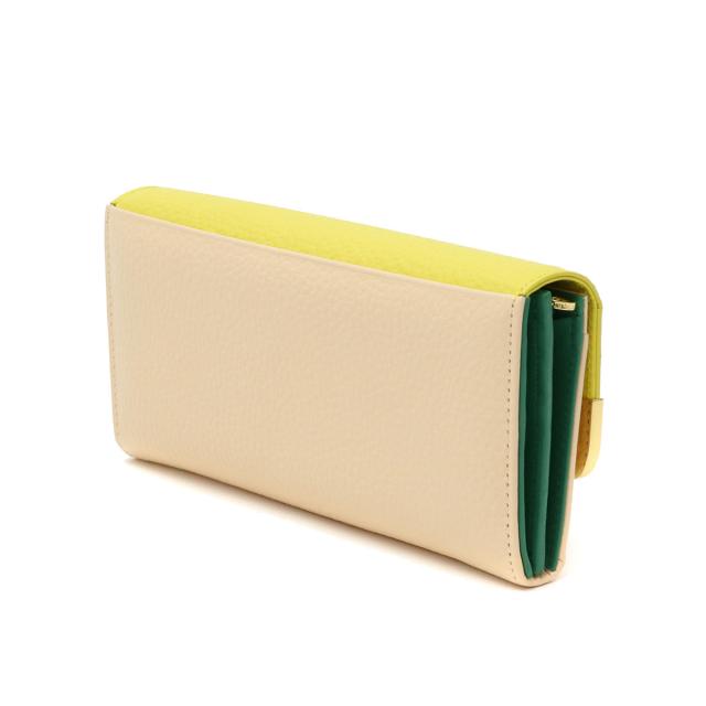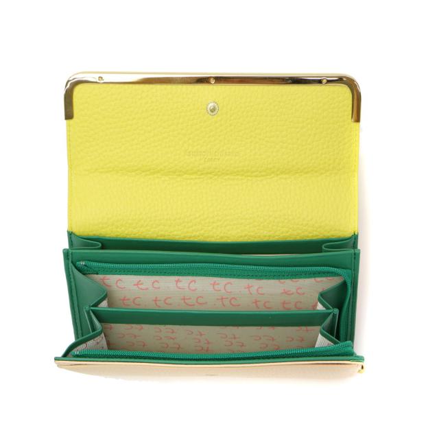 3色のカラーコンビネーションがお洒落で大人可愛い「シュリンクコンビ」シリーズの長財布。シボのあるシュリンクレザーとゴールドの口金が上品さを漂わせながらも、ネコちゃんがさりげなく顔を出すキュートなワンポイントも忘れないのがツモリチサトらしい仕上がり。収納スペースは視認性の良い作りで、お金の出し入れがしやすく、使い勝手に優れている点もポイントです。