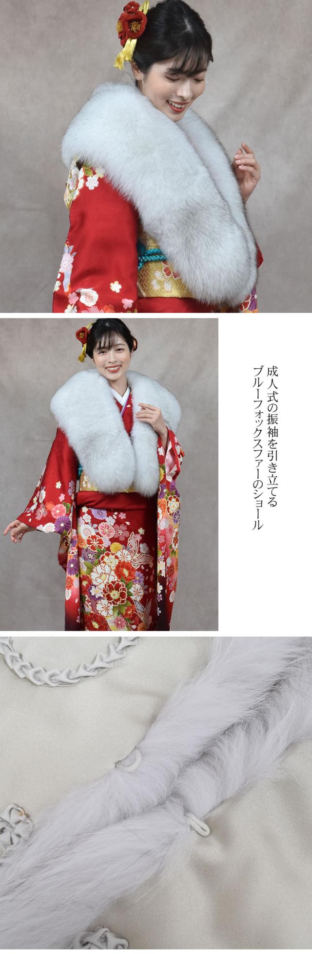 毛皮ファーケープファーストール成人式用ブルーフォックスストール(FS1249)(化粧箱付)