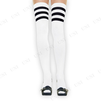 | 商品説明 | ホワイト生地にブラックの3ライン入りサイハイストッキング。シンプルで様々なコスチュームと合わせやすいデザインです |
