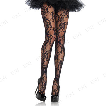 コスプレ 仮装 フローラルレースパンスト ブラック パンティストッキング プチ仮装 コスプレ小物 小道具 靴下 タイツ レギンス フリーサイズ 花柄