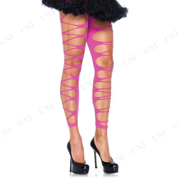 コスプレ 仮装 穴開きフットレスタイツ(レギンス) ネオンピンク 靴下 ストッキング プチ仮装 コスプレ小物 小道具 フリーサイズ カットアウトデザイン