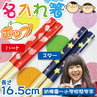 お箸 子供用 箸 子ども ギフト安全箸 ポップ 16.5cm すべり止めつき 翌々営業日出荷 名前入り おはし 子供用 入学 名入れ プレゼント 赤 青 ハート 星 スター かわいい 女の子 男の子