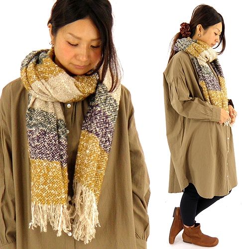 ストール マフラー レディース【ネコポス便 送料無料】定番 マルチ太ボーダー柄 やわらか大判アクリルストール 全4色