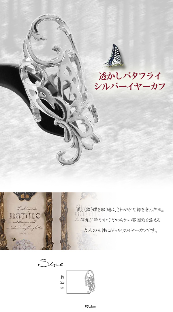 透かしバタフライ ロング シルバーイヤーカフ(1P/片耳用)