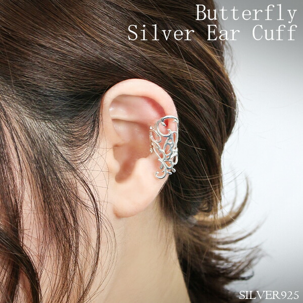 透かしバタフライ ロング シルバーイヤーカフ(1P片耳)イヤーカフス/シルバー925/イヤーカフ レディース