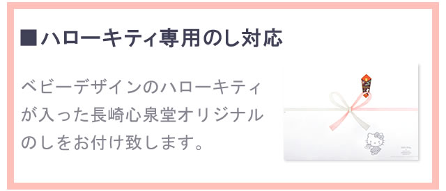 「大事な人だからこそ良い物を贈りたい」そんな方のために 長崎心泉堂ではハローキティの特別ギフトをご用意。 出産内祝いや誕生日プレゼントなど使い方は様々。 心あたたまるギフトとなっております。