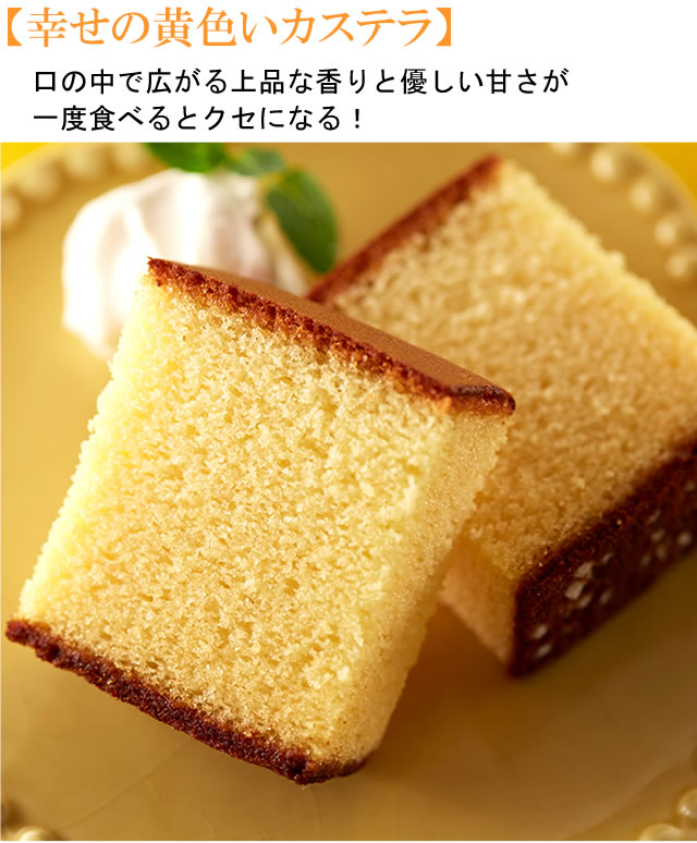 オシャレでシンプルな可愛らしいパッケージはこのギフト専用です。 中身はモンドセレクション金賞受賞した「幸せの黄色いカステラ」。 一度食べるとクセになる美味しさと大評判!