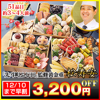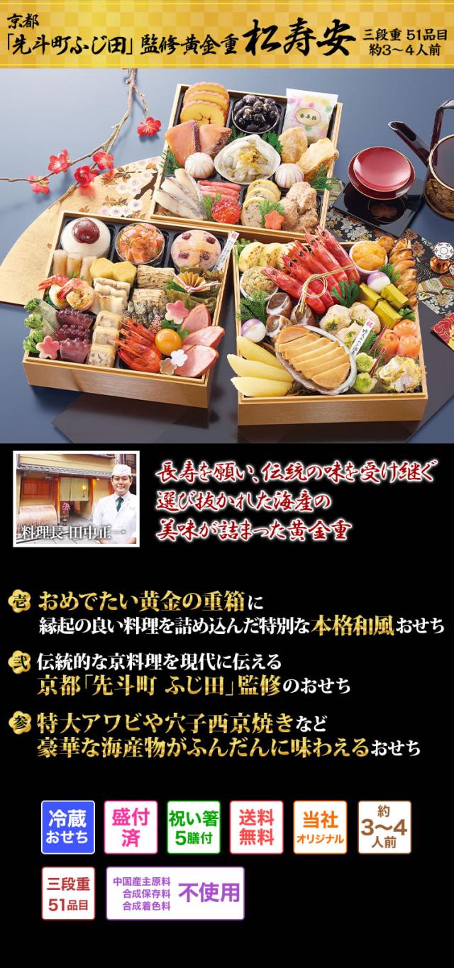 6.5寸三段和風おせち 【51品目・3〜4人前】 京都先斗町 「ふじ田」監修黄金重 松寿安 【送料無料】 冷蔵おせち 冷蔵 おせち お節 御節