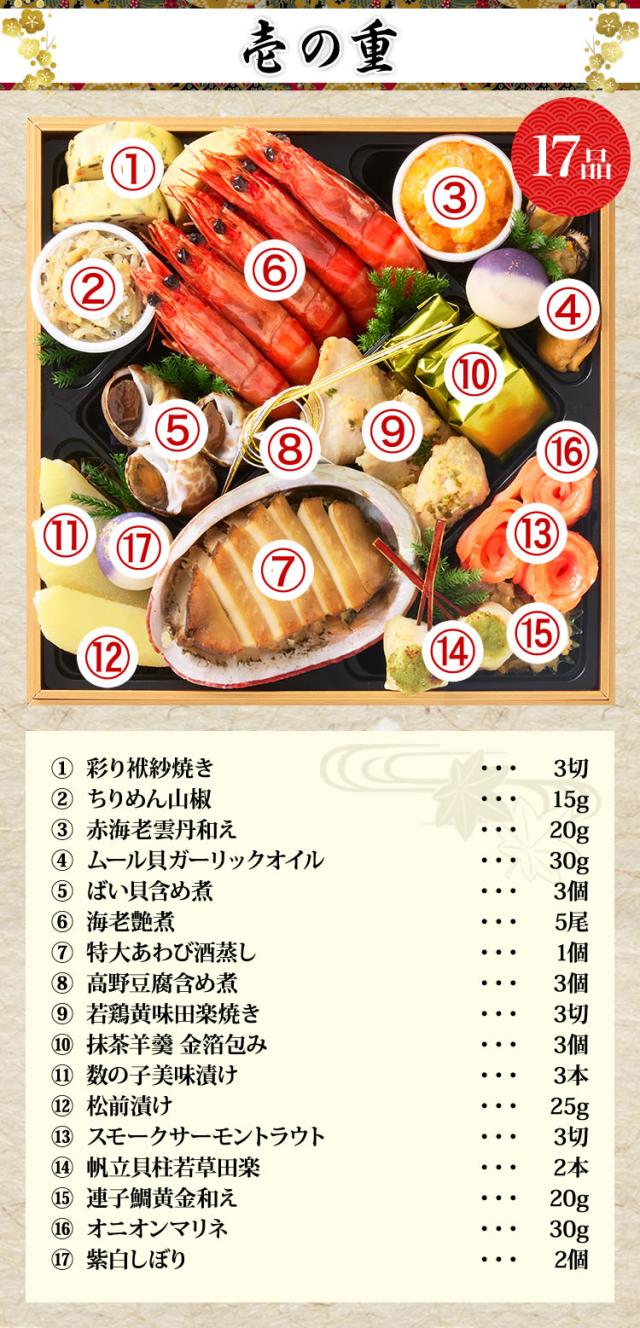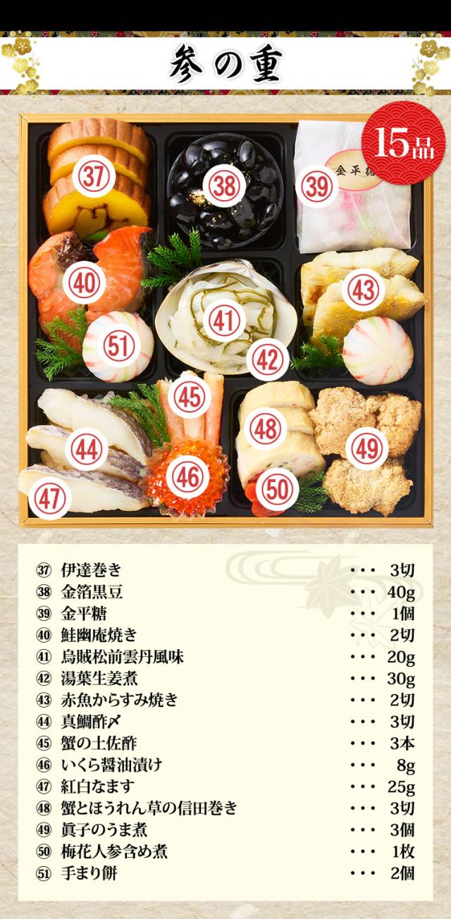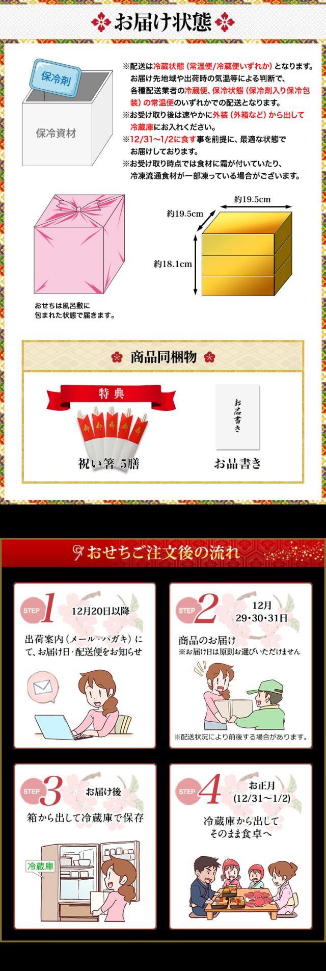- 諸々の割引により、15,000円ちょっとで購入できましたが、価格の割に食材も豪華で、味付けも良かったです。 配送もクール便で問題ありませんでしたし、オススメできるおせち。