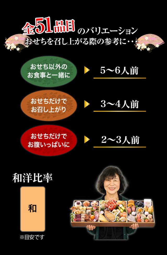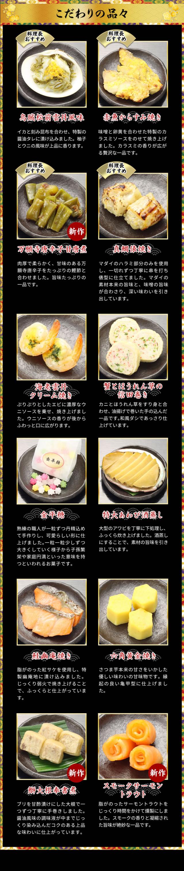 - 1品ごとの量は少なめですが、品目の多さに満足です。送り先の実家の母親も喜んでいました。今年はコロナ予防のため、帰省出来ずおせち料理オアズケですが、来年また購入し、親と一緒に京風味を感じたいと思います。