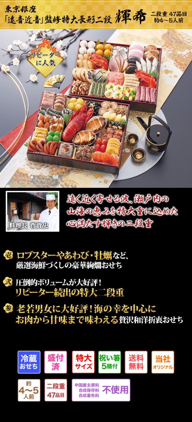 8.5×10.5寸特大二段おせち 【47品目・4〜5人前】 東京銀座「遠音近音」監修特大長形二段 輝希 【送料無料】 冷蔵おせち 冷蔵 おせち お節 御節