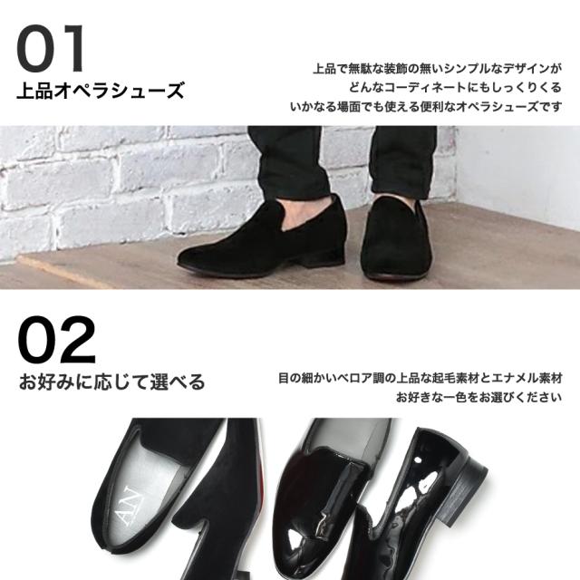 AN スリッポン メンズ オニグリ スリッポンシューズ オペラシューズ ローファー ヴァンプローファー ブランドシューズ 革靴 皮靴 短靴 ドレスシューズ スエード スウェード エナメル ブラック 黒 靴 シューズ アン 送料無料