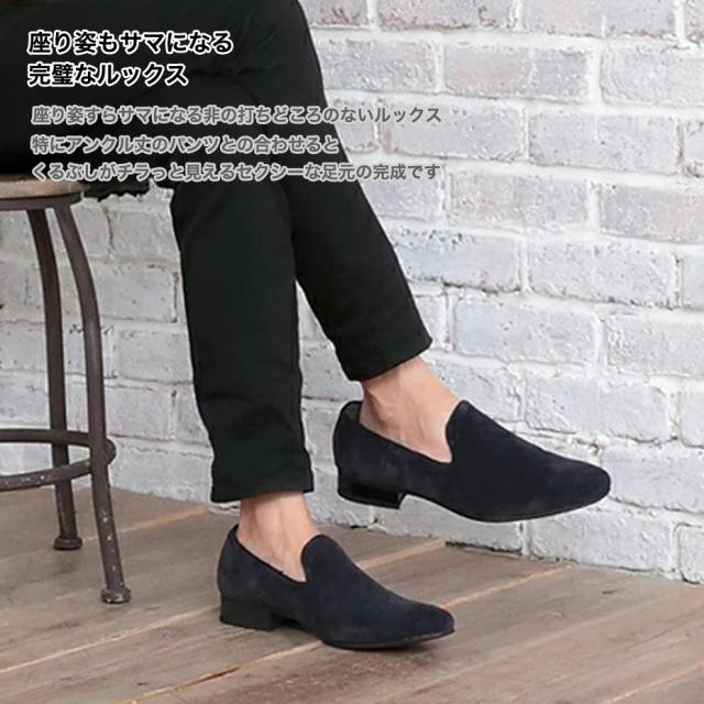 ベルベットのような高級感のあるフェイクスエードが足元を知的に演出してます。