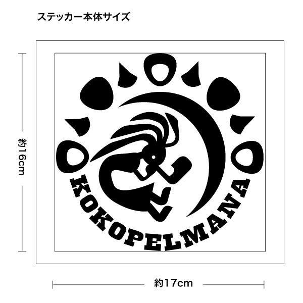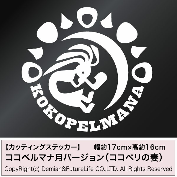 大人気のココペルマナ(KOKOPELMANA )がカッティングステッカーで登場!シートの材質は屋外看板用に使用されている耐光性・耐水性に優れた業務看板用シート(屋外耐候5〜7年程)ですので、屋外でも車の窓の外側から貼付けでも大丈夫です。シートを切り抜いてアプリケーションシート(台紙)を付けて、すぐに貼れる状態で発送致します。万一貼付けに失敗しても安心の2枚組♪【商品仕様】■サイズ:幅約17cm×高約16cm ■素材:屋外看板用シート、和紙アプリケーションシート ■簡単な貼り方の説明書 ■製作:日本【注意事項】※シート切り抜き作業等、1枚ずつハンドメイド品である事ご了承下さい。