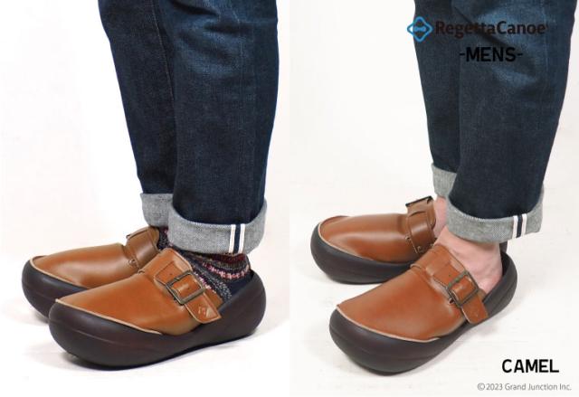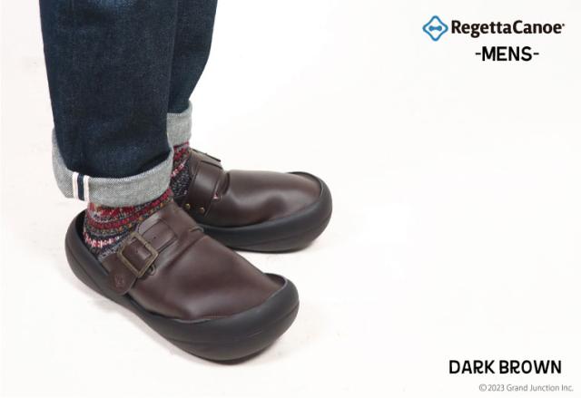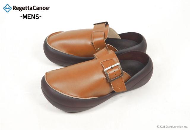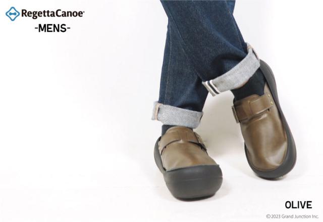 RegettaCanoeから登場!合皮素材採用の重厚感のあるメンズサボです。アッパーには上質な合皮素材を使用。ナチュラルな風合いでどんなスタイルにも合わせやすい! 落ち着いた色味と村加工がオトナな雰囲気の一足。 アンティーク調のバックルベルトがワンポイントです。靴下ありでも素足でも着用できるデザインなので、長いシーズン活躍します。