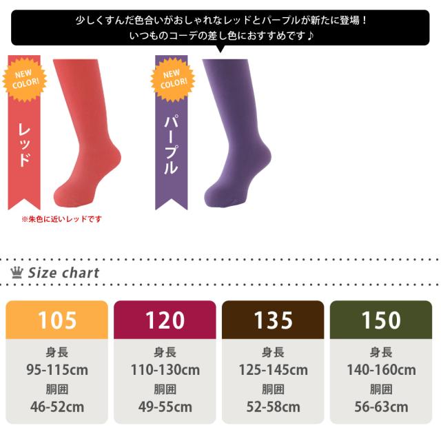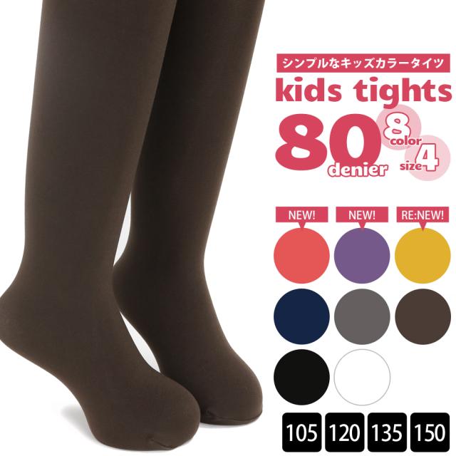 女の子 タイツ | 80デニール カラータイツ 全9カラー 4サイズ | 子供 ジュニア キッズ ガール 防寒 通学