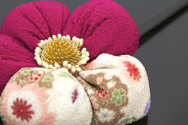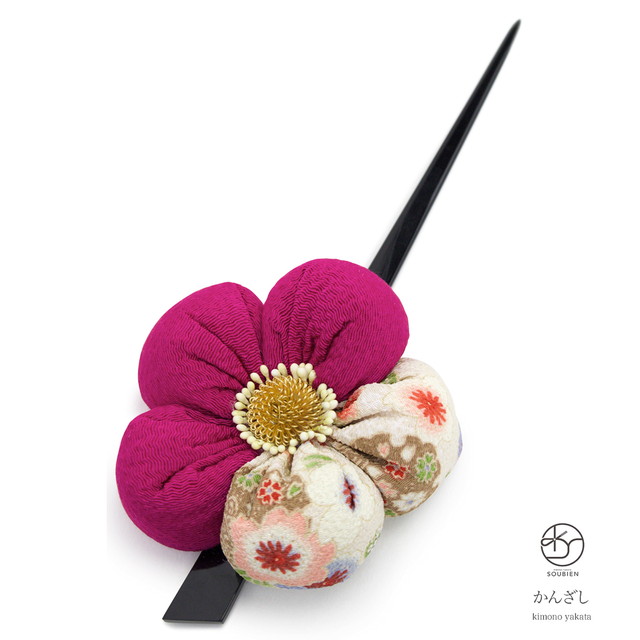 簪 かんざし ピンクマゼンタ 梅 縮緬 和柄 日本製 髪留め ヘアアクセサリー 袴 浴衣 着物 振袖 成人式 卒業式 和装